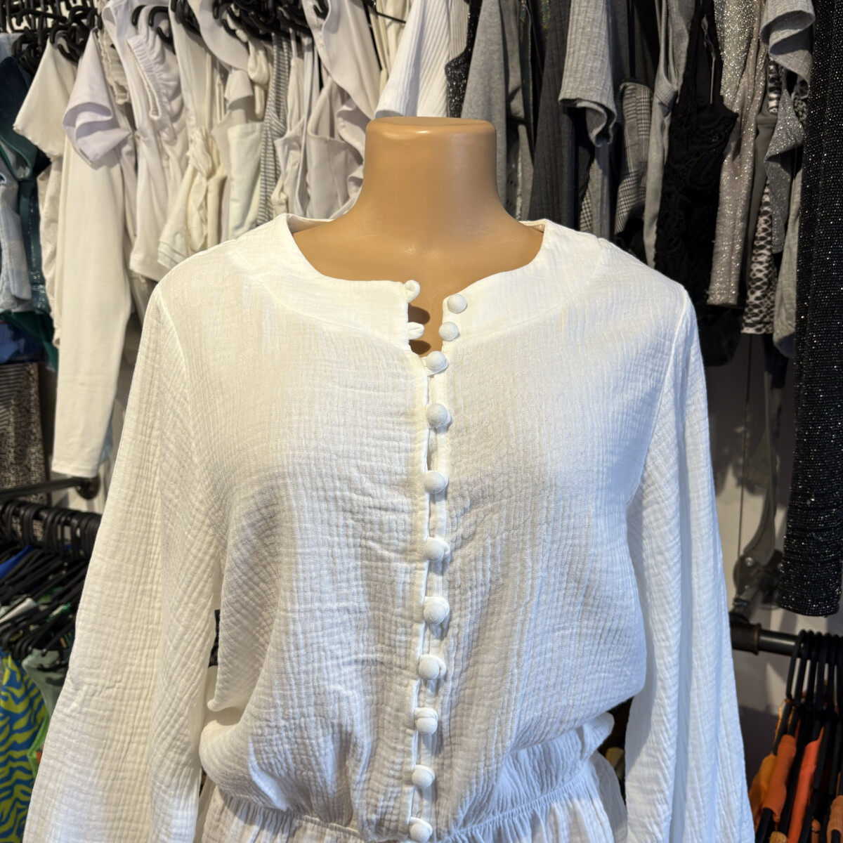 • Talle M-L ambos, holgados, mangas globo, abotonados adelante