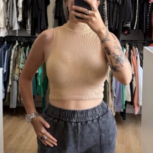 Top Zara beige con cuellito