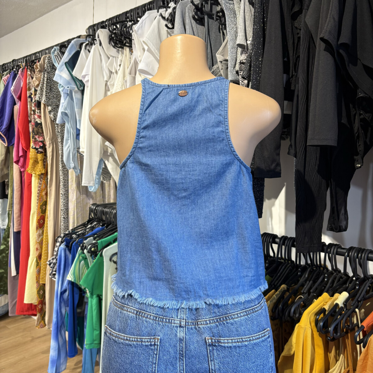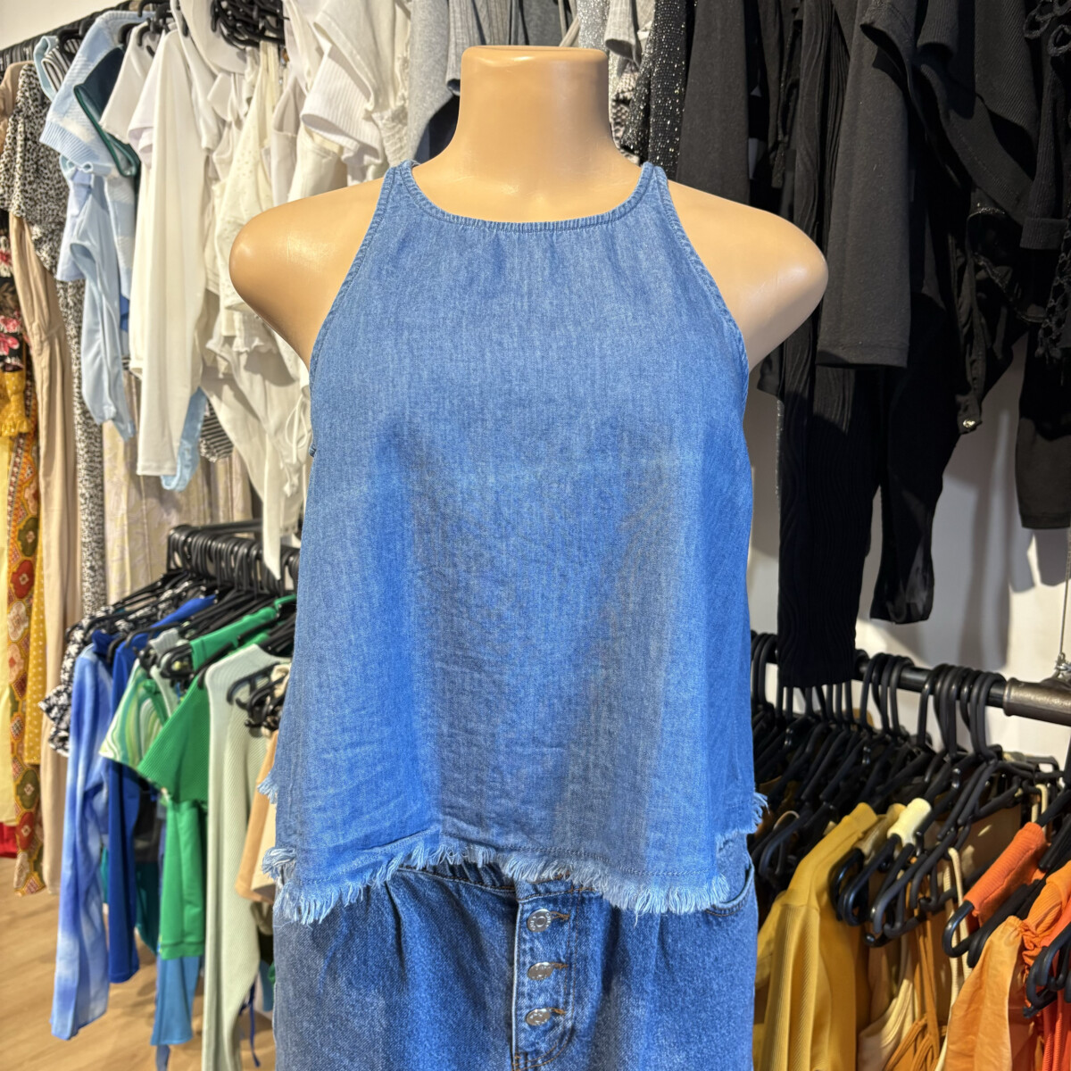 Color azul de jean finita, desflecada abajo