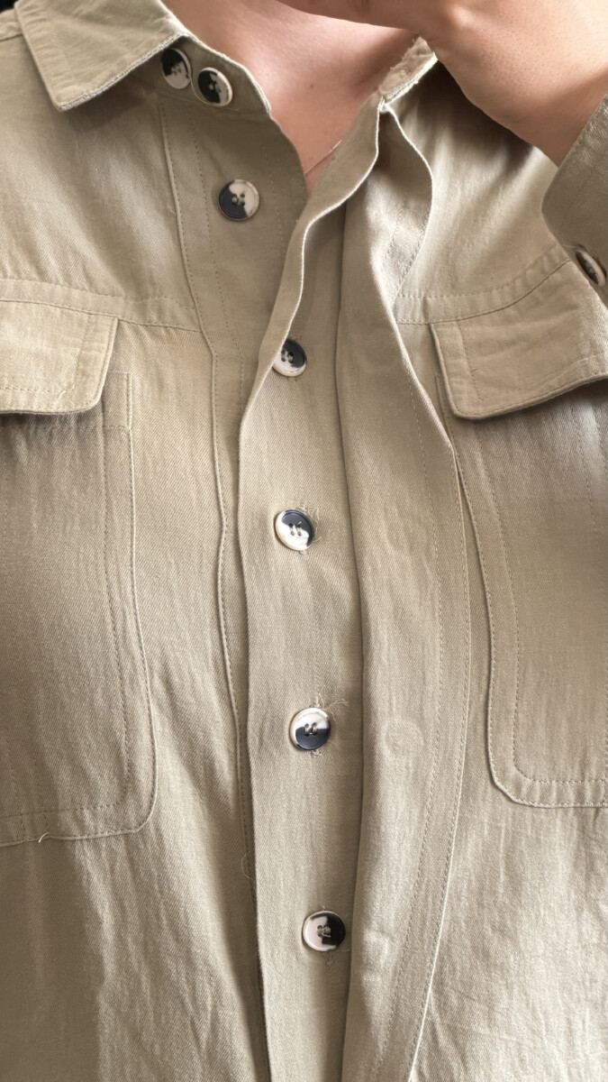 • Lino, color verde, botones carey blanco y negro