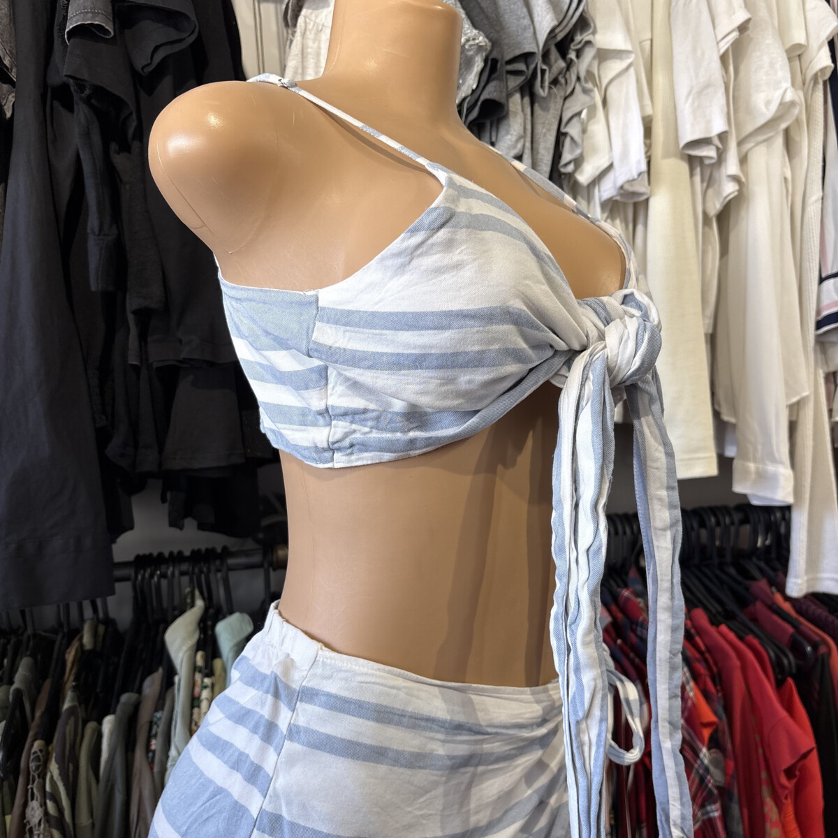Conjunto Bluesteel top + short pollera celeste y blanco