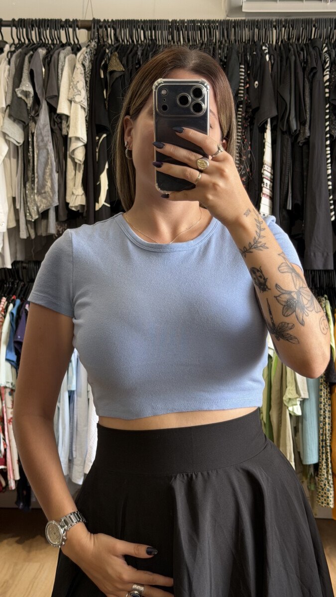 Remera crop top Zara celeste cantidad