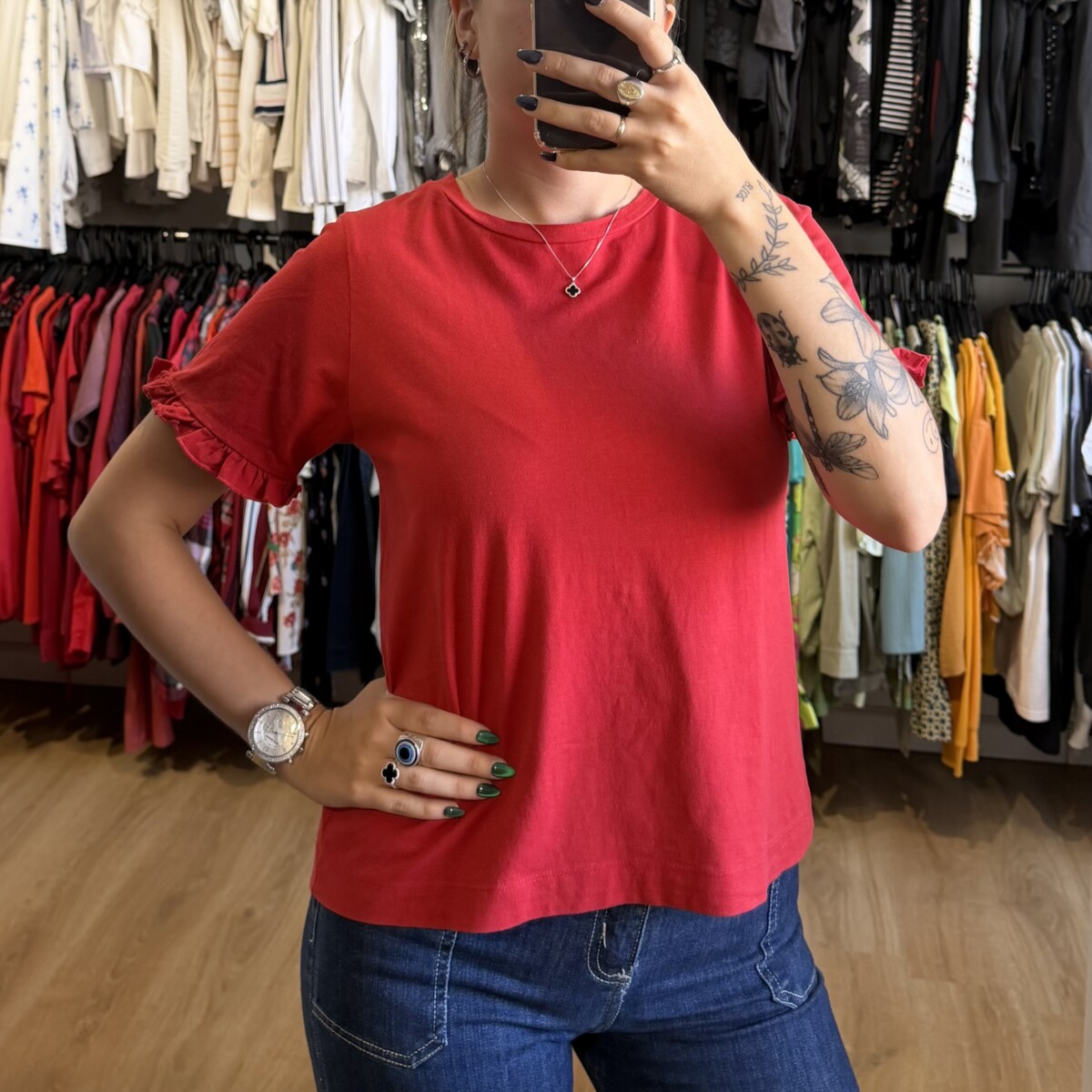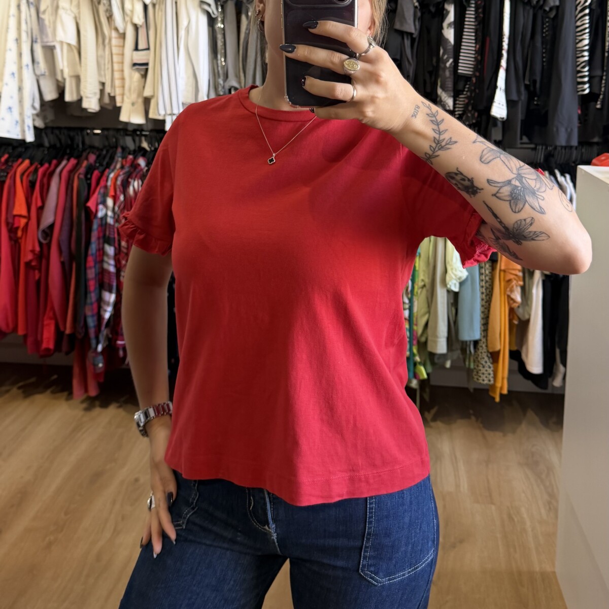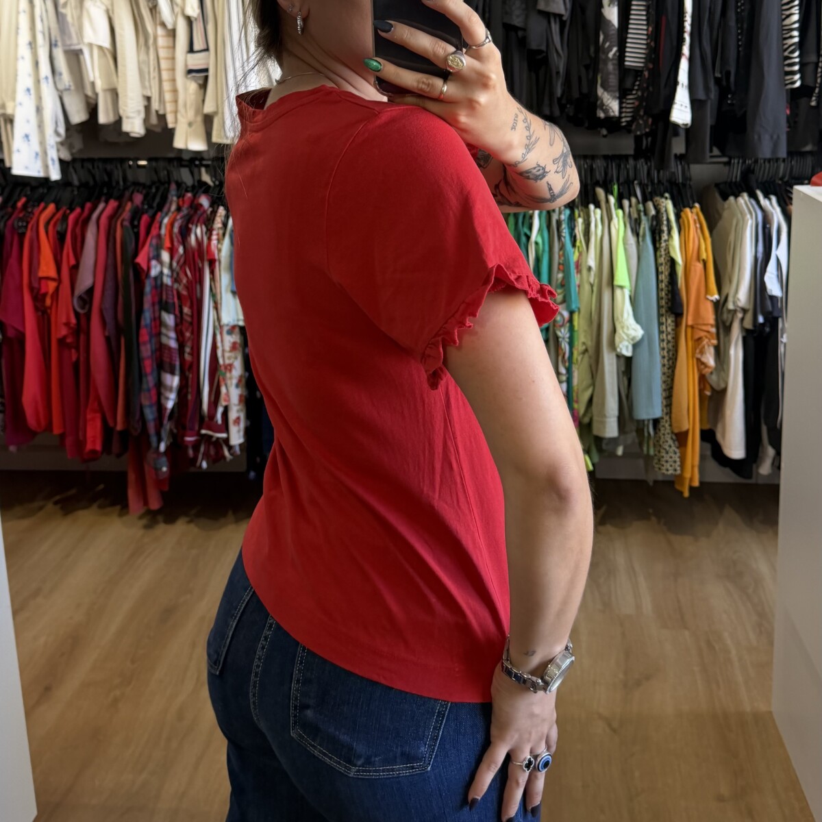Remera Indian roja volados cantidad