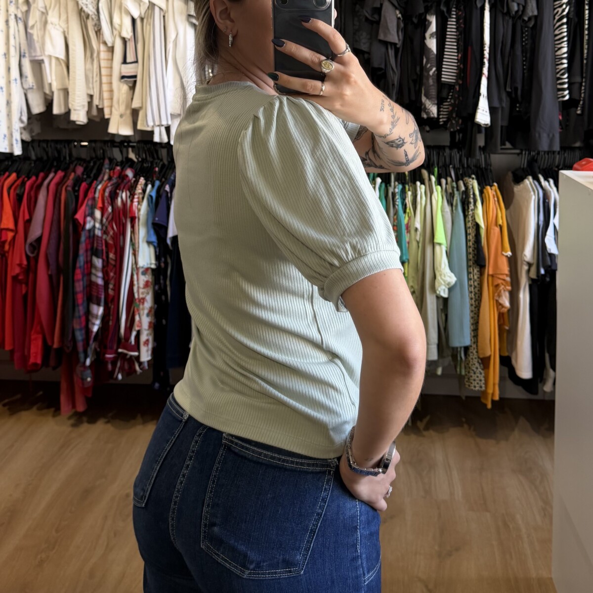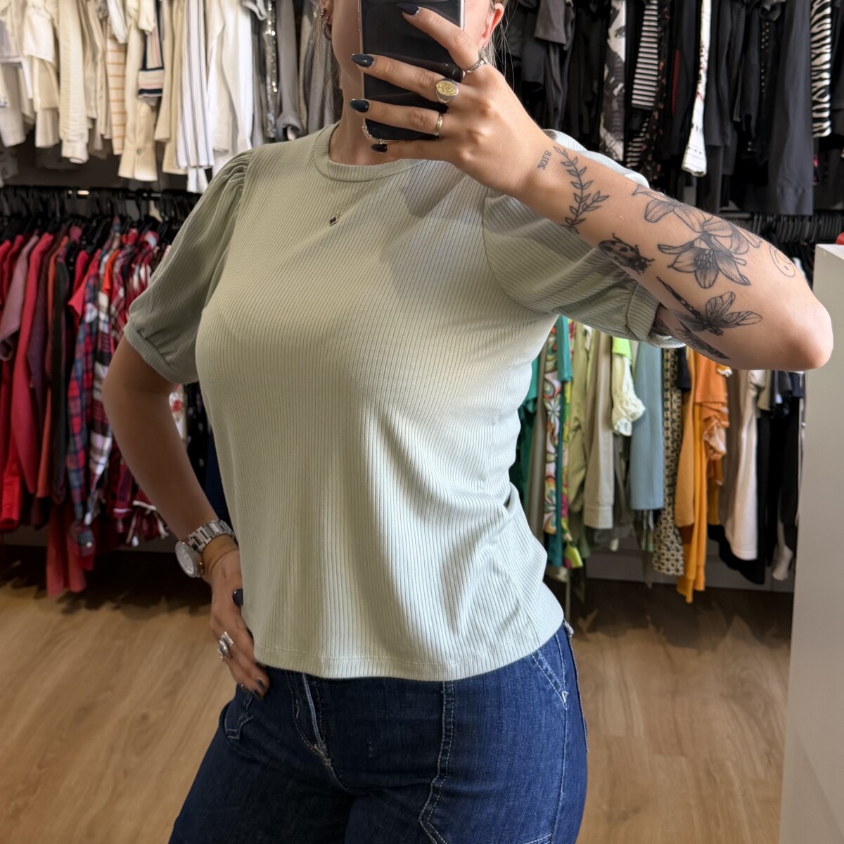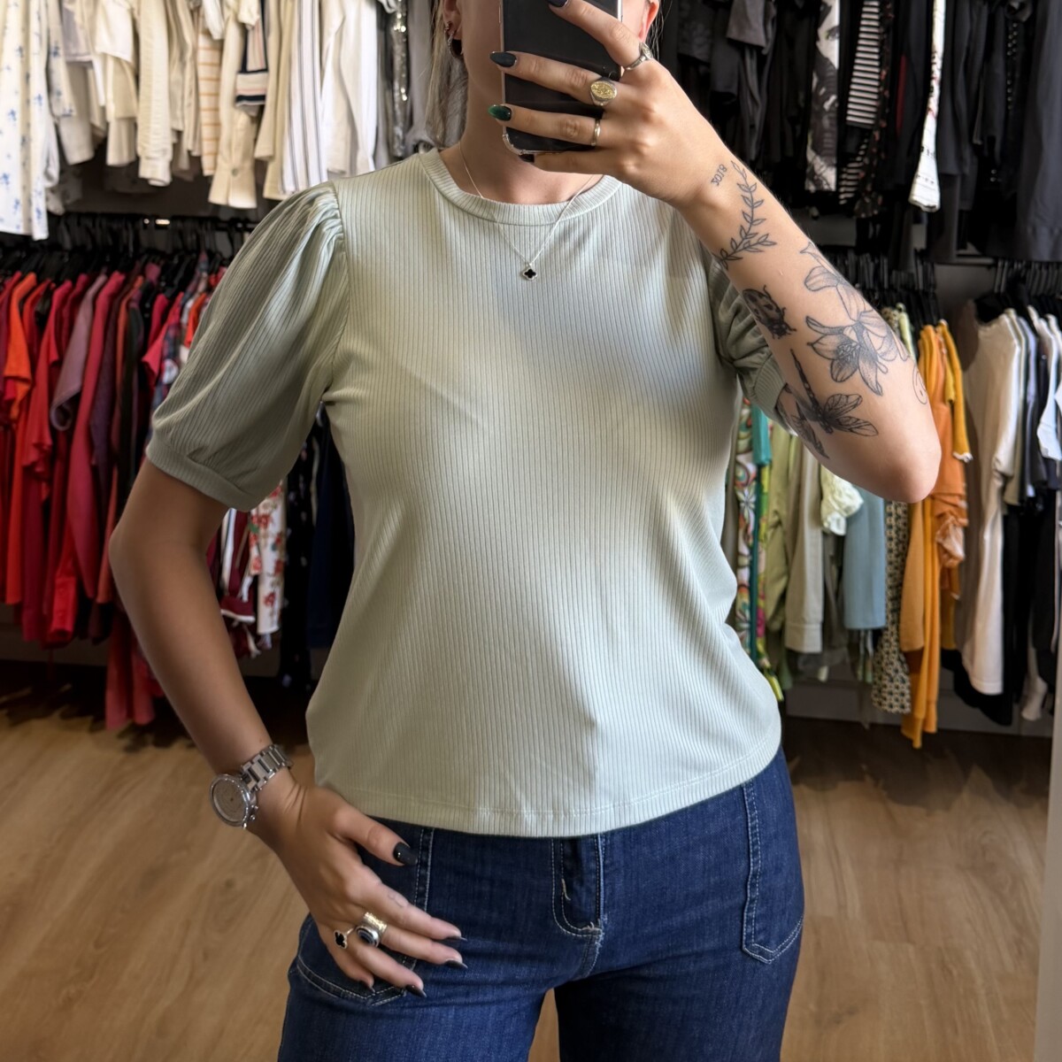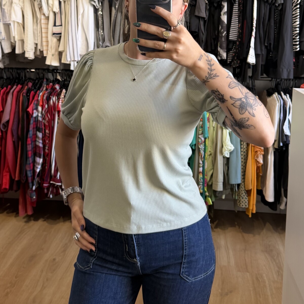 Remera Indian verde pastel cantidad