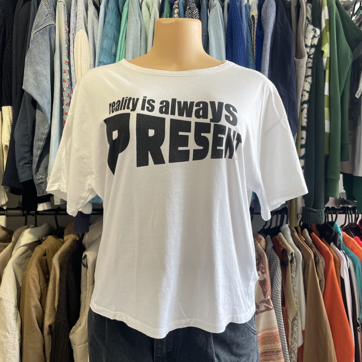 Remera Zara blanca letras negras