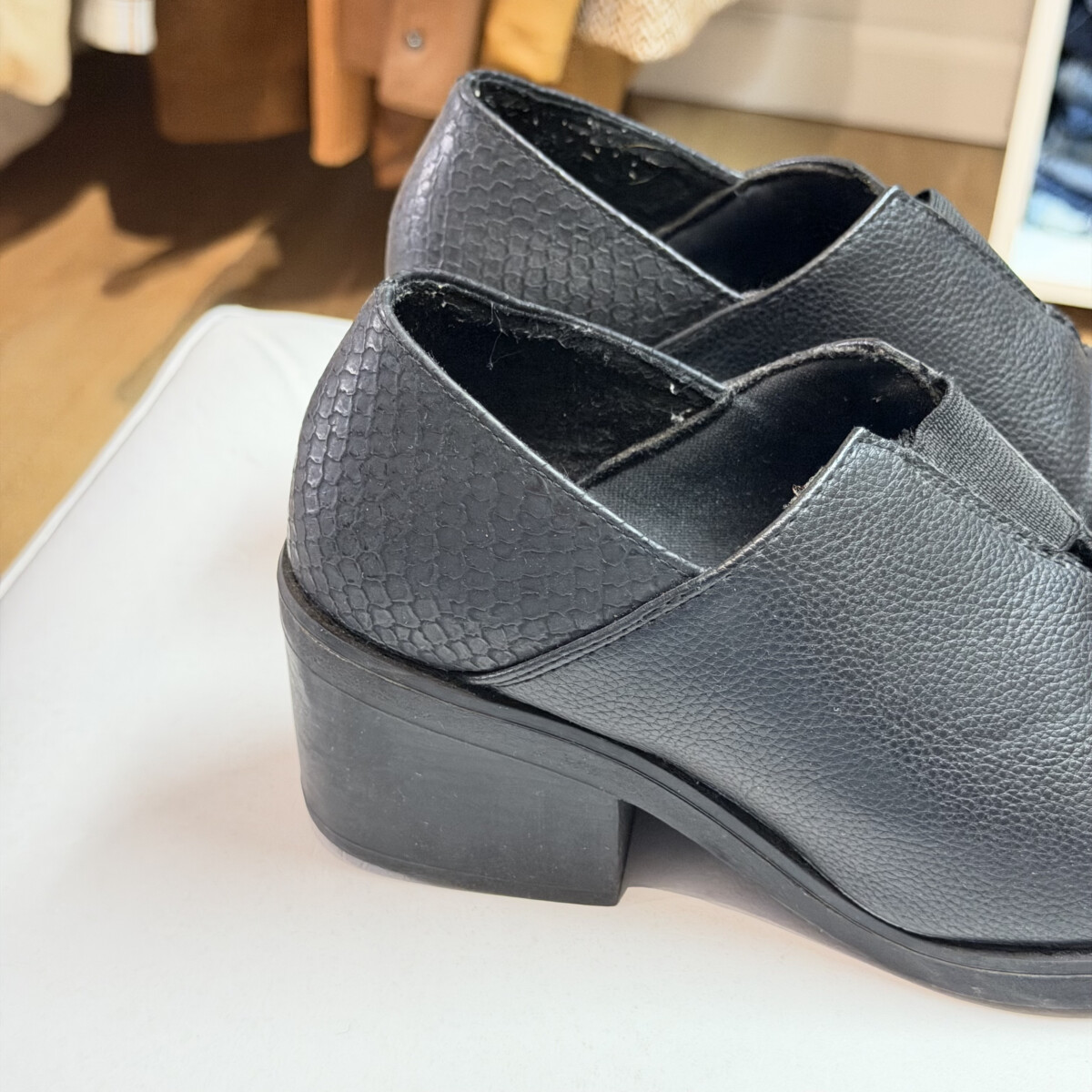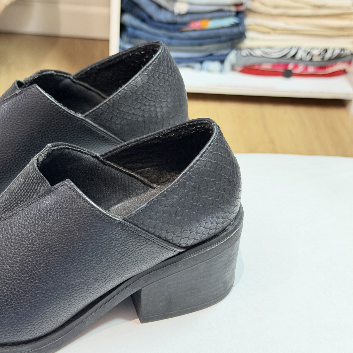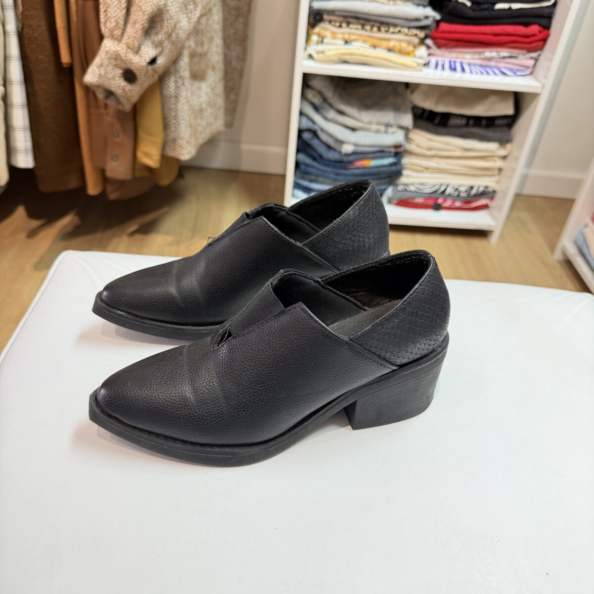 Color negro, mini taco atrás, en punta adelante